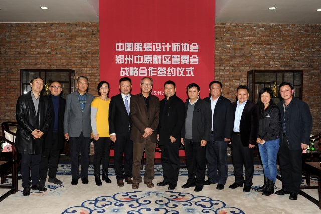 11月10日,中国服装设计师协会、郑州中原新区管委会战略合作签约仪式在北京751D•PARK举行。中国服装设计师协会主席李当岐、中国服装设计师协会副主席兼秘书长张庆辉,中共郑州市中原区委副书记、郑州中原新区管理委员会常务副主任苏西刚、郑州领秀服饰有限公司董事长陈勇斌等出席签约仪式。