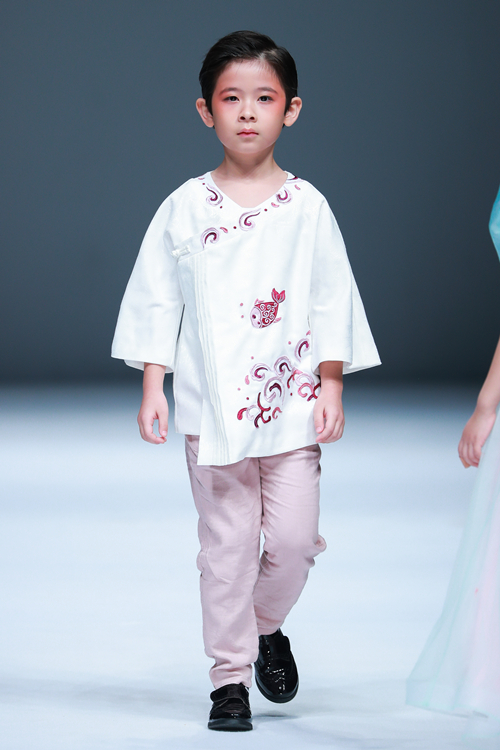 比如汪小荷的范湧在服装中既保留中式传统工艺、手工包边、盘扣、刺绣,印花,又注入时尚元素,创造出中西合璧的新中式经典童装,让人印象深刻。