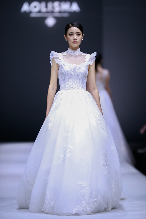 转场,同样是婚纱,AOLISHA•魏新坤从奇幻故事中撷取神秘的元素运用到婚纱中,结合精美手工打造出都市新娘梦中的童话嫁衣。