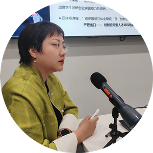 张馨月副教授带来了题为《多维融合背景下服装表演专业教学创新路径》专业分享,介绍了鲁迅美术学院服装表演专业的构建过程以及特色课程。“2015年学院实行了多维度跨界融合,创新教育体系改革。历经了十年的实践探索,构建了完备的跨专业课程体系。根据纺织服装全产业的特色,打破了服装、纺织、纤维、表演四个专业壁垒。以全局观的思想为主导,设置了四个专业的融合课程群,将融合教育成果与服装表演专业高度融合,并将思政教育与产业实践相结合,将大思政课贯穿教育的实践。