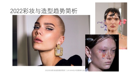 第二位分享嘉宾,岳晓琳老师,分享的题目是“2022年时尚造型趋势解析”。岳老师主要分享了两个内容方向,第一个,彩妆造型趋势简析,第二个,2022时尚流行色简析。岳老师指出2022年时尚造型潮流的五个趋势,国潮方兴未艾;现时代的自然、精致、简约、疗愈;复古与感性的文化意识苏醒;充满未来幻想主义的虚拟数码化浪潮-元宇宙;改造与再生。