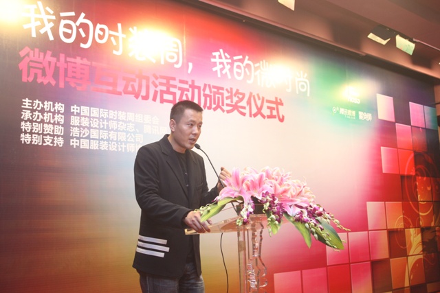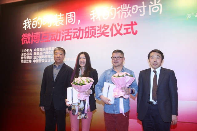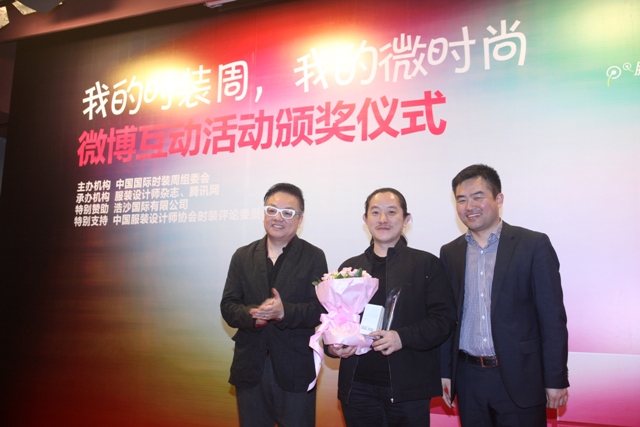 4月13日,“我的时装周,我的微时尚”微博互动活动颁奖仪式在D•PARK北京会所举行,本次微博活动由中国国际时装周组委会主办,浩沙国际特别赞助,《服装设计师》杂志与腾讯网承办,中国服装设计师协会时装评论委员会给予了特别支持。